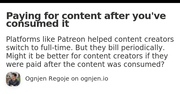 Paying for content after you've consumed it PDF€0.99+€0.99+https://schema.org/InStockeurOgnjen RegojeOgnjen RegojeName a fair price:€Buy this0 salesPagesSize128 KBLength2 pagesAdd to wishlist New wishlistShare on XShare on Facebook Copy linkCopy product URL
